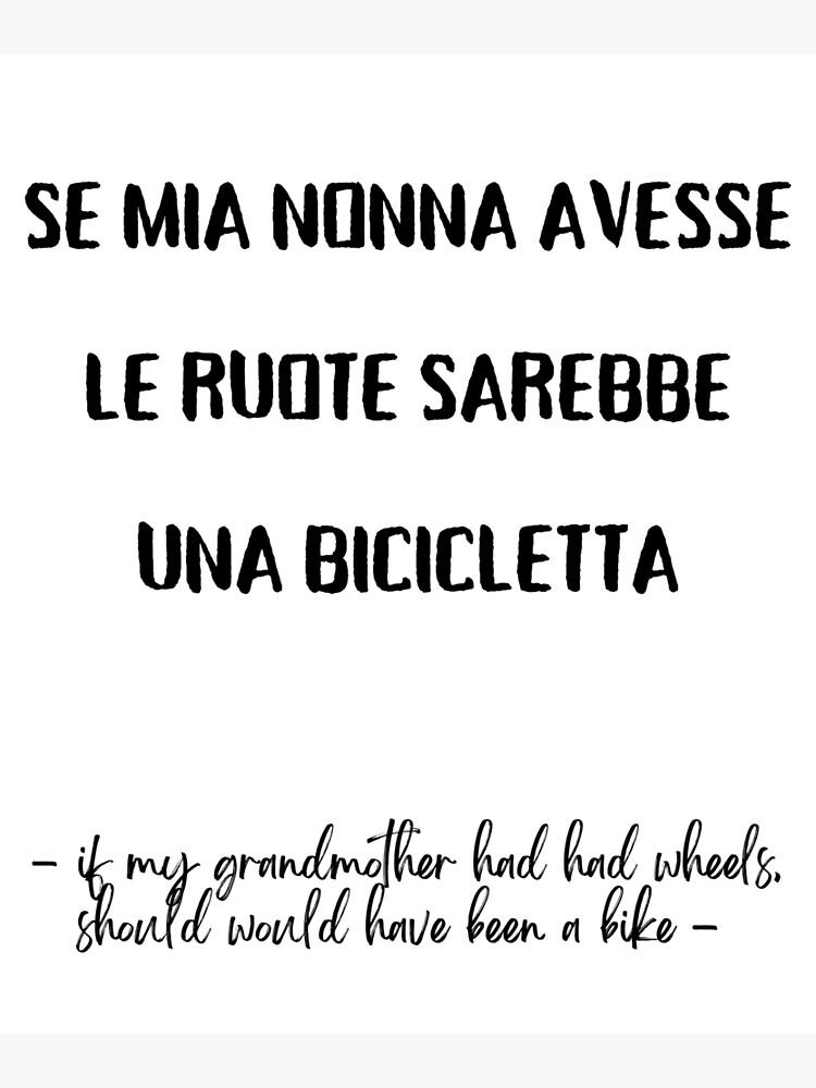 "IF MY GRANDMOTHER HAD HAD WHEELS SHE WOULD HAVE BEEN A BIKE" Poster for Sale by ItaliaQuotes